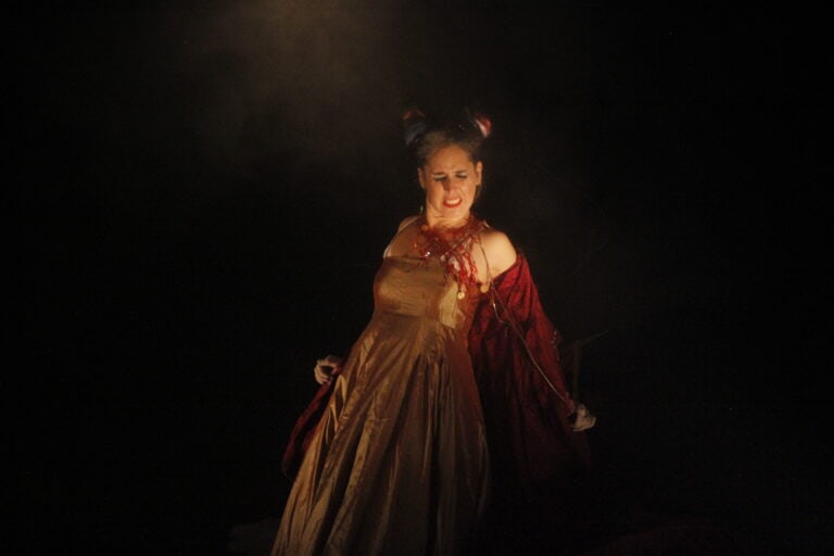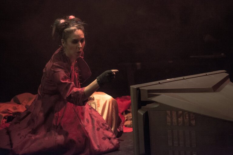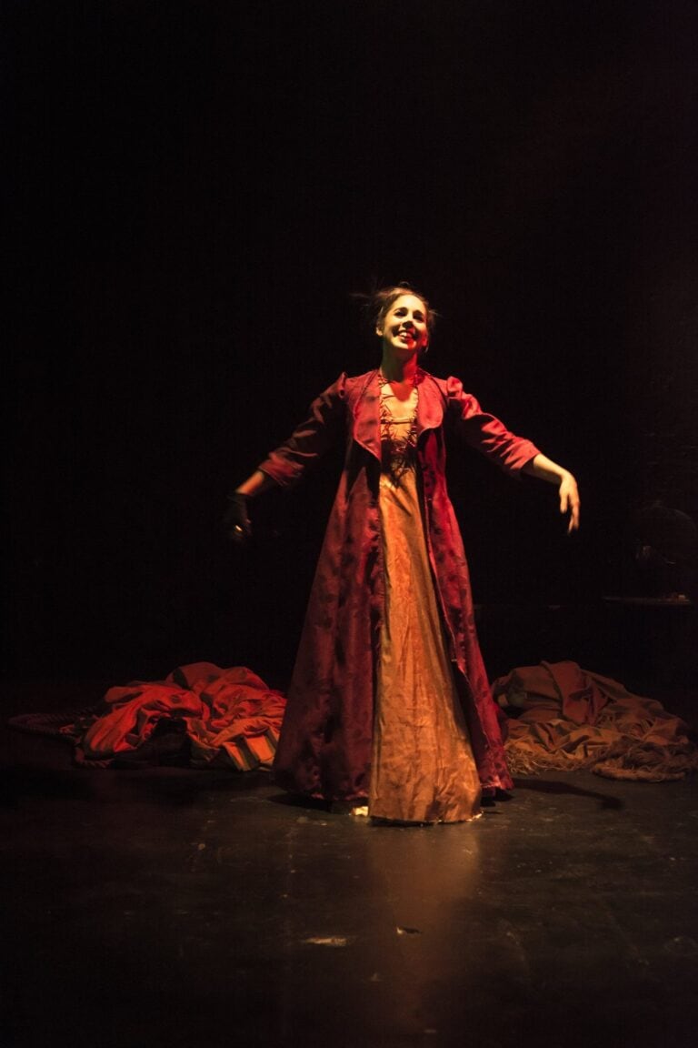 Se ha dicho que los crímenes de Macbeth provienen del maleficio de tres brujas y la influencia de su esposa…en esta versión sólo encontramos a Lady Macbeth dialogando consigo misma y su conciencia (¿bruja?). La presencia masculina se da por su ausencia… ¿o acaso no fue decisión de Macbeth abandonar a su esposa y no seguirla en el camino de su locura? En diálogo incisivo, suplicante y hasta cómico esta versión renueva el cauce moral que la sustenta y propone una batalla distinta que se gesta en una interioridad al descubierto. La bruja augura: “vendrán épocas de crímenes felices donde el poder ignorará las muertes que ocasiona…” Solo nos espera el tránsito de la pesadilla y procurar no quedar cubiertos de sangre, ya sea como asesinos o como víctimas.